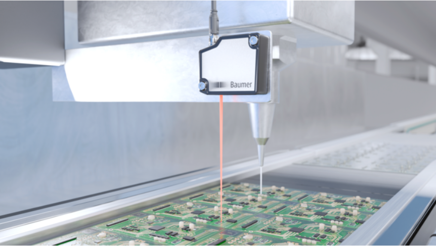 Laserové optické snímače Baumer umožňují opakovatelné a vysoce přesné polohování nástrojů na různých typech povrchů – od lesklých substrátů desek plošných spojů po kovové komponenty.